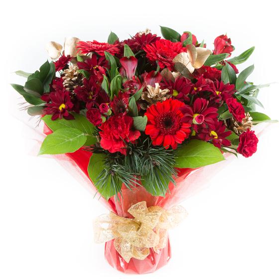 Our most popular Christmas bouquet. With eucalyptus and spruce this bouquet not only looks Christmassy but smells Christmassy too!