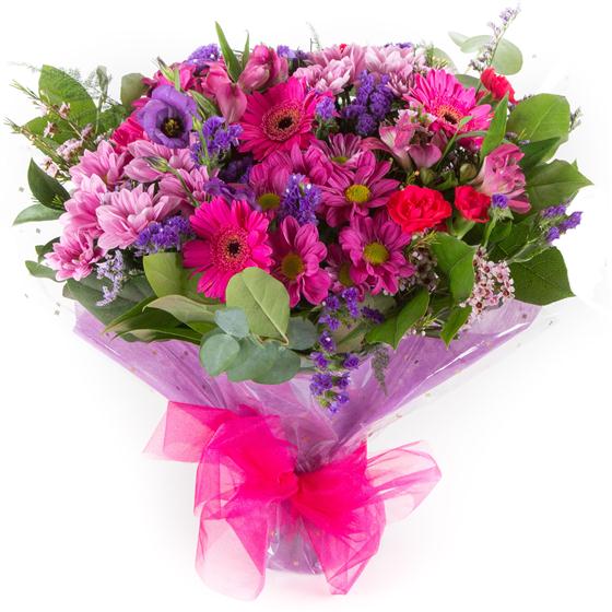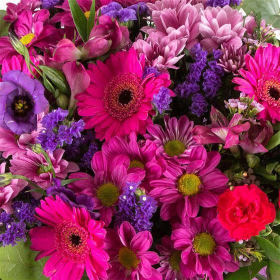 One of our most popular bouquets, a vibrant, seasonal mix of pretty pinks and purples.